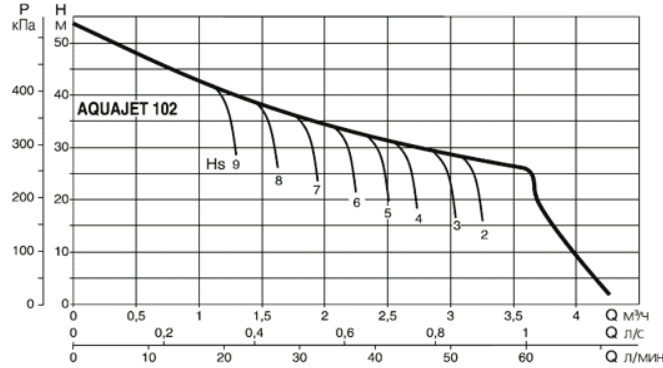 Автоматический насос AquaJet 102 обеспечивает напор до 54 м и предназначен для работы в локальных системах водоснабжения с максимальным расходом 3,6 м3/ч.